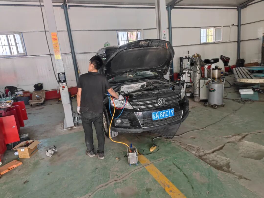 修车师傅赶到,二话不说就开始换器件,穿黑衣服的小伙子很年轻,也就20出头,但干起活来特别麻利。