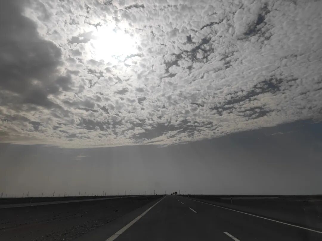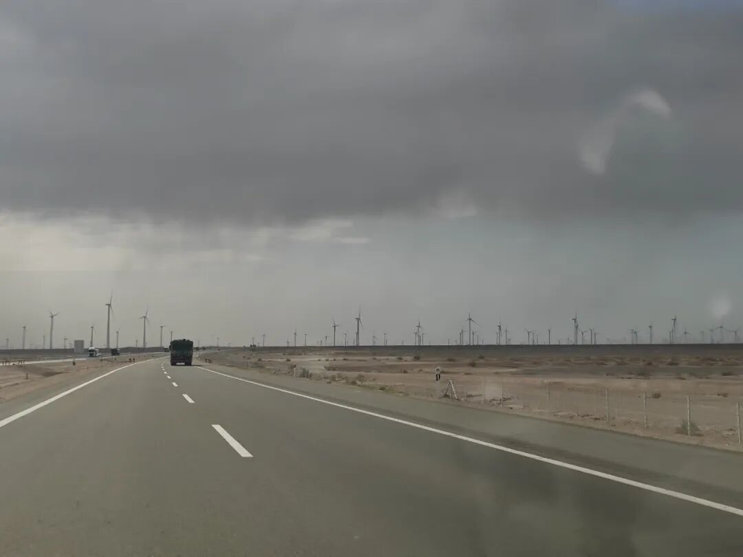我的车总是左右摇摆,我还在想是不是车跑偏,看到这一片密集的风电,我知道应该就是横风导致的。