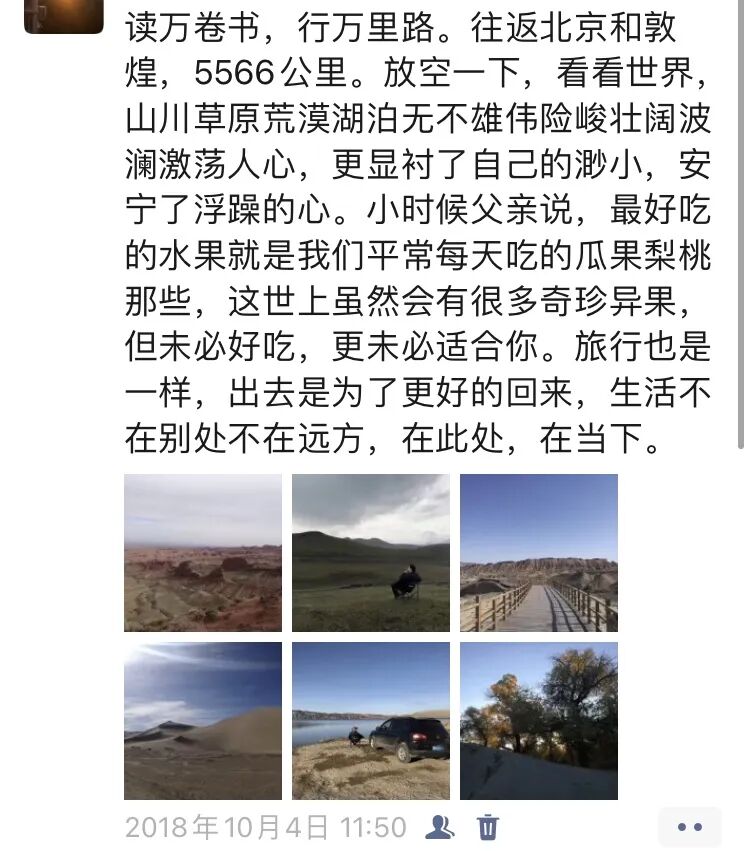 看我那个时候发的朋友圈,虽然自驾和到处跑的经验很早以前就开始慢慢积累,但那个时候我和现在的状态心境是完全不同的。那个时候,我和大多数人一样,平日工作,偶尔旅行,旅行是工作生活的调剂。现在,这成了我的生活。