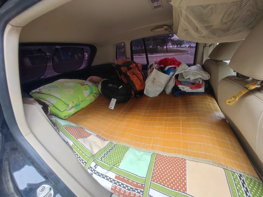 床车让我可以在任何地方、自由自在的、懒洋洋的躺下,尤其这种刚出发时满车的水、电和食物,随性又安稳。