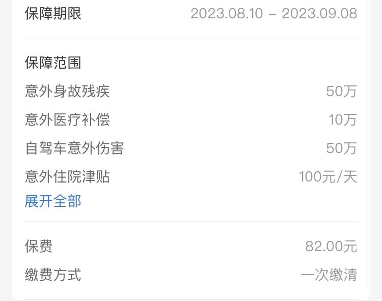 上完车险,又顺手把之前一直按月买的82元赔100万的自驾意外险买了。