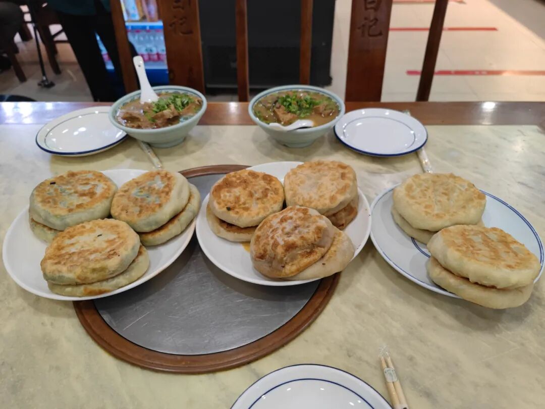 我请两位大哥吃了个便饭,楼下我常吃的馅饼,没有粥就点了两碗炸豆腐汤,还给他俩买了两瓶矿泉水。