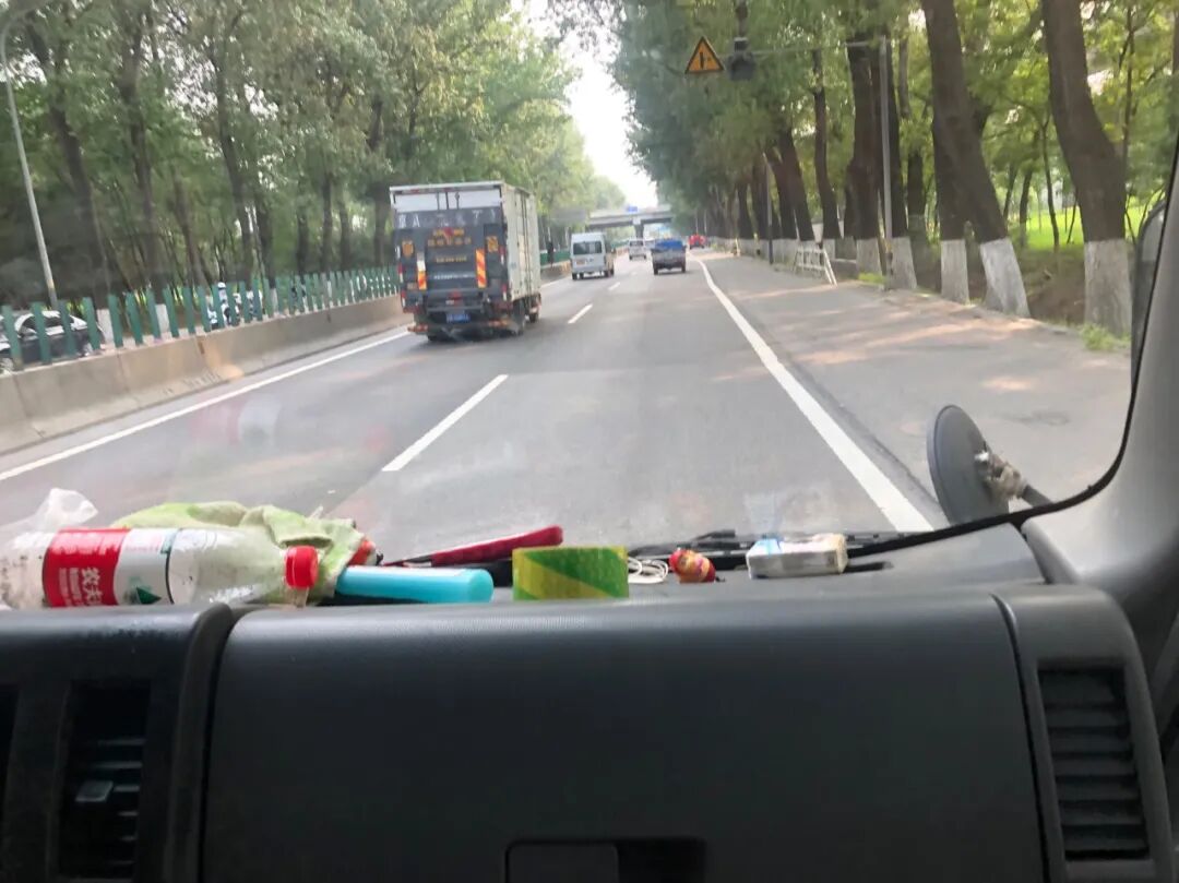搬家只来了两个人,车上正好空出个位置,我今儿尾号限行,就跟他们车一起去怀柔。