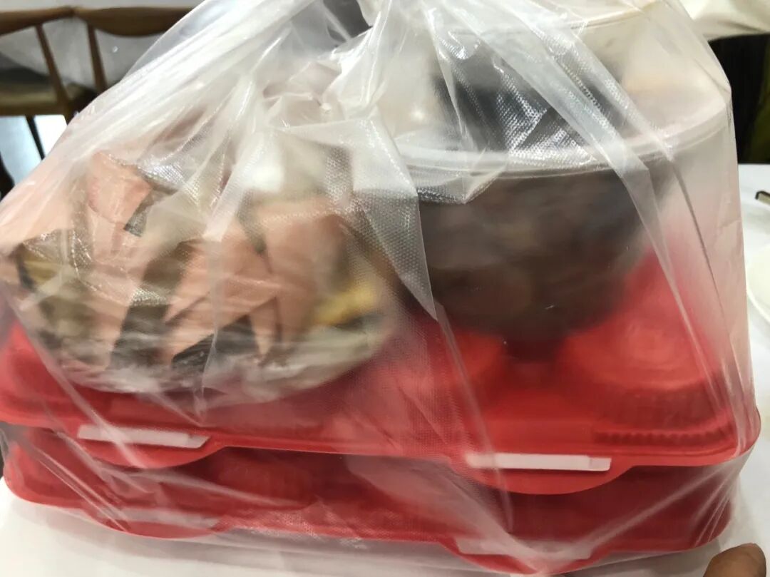 还有4个人坐火车到北戴河,我给他们打包了4个驴火、两份驴肉蒸饺和一个驴肉大拼盘。