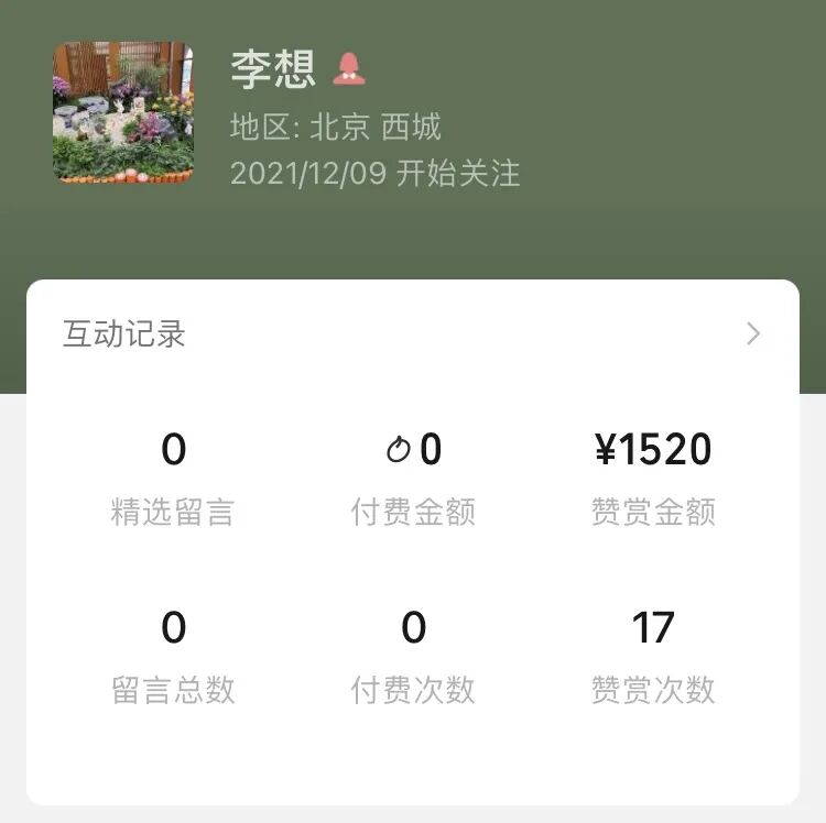 公众号的后台统计最近15天的数据,原来我的公众号阅读排行榜,我妈一直是第一名,后来新增的关注多起来,有人会去从头一篇又一篇地看我以前写的文章,她就慢慢下滑到了7-9的位置。