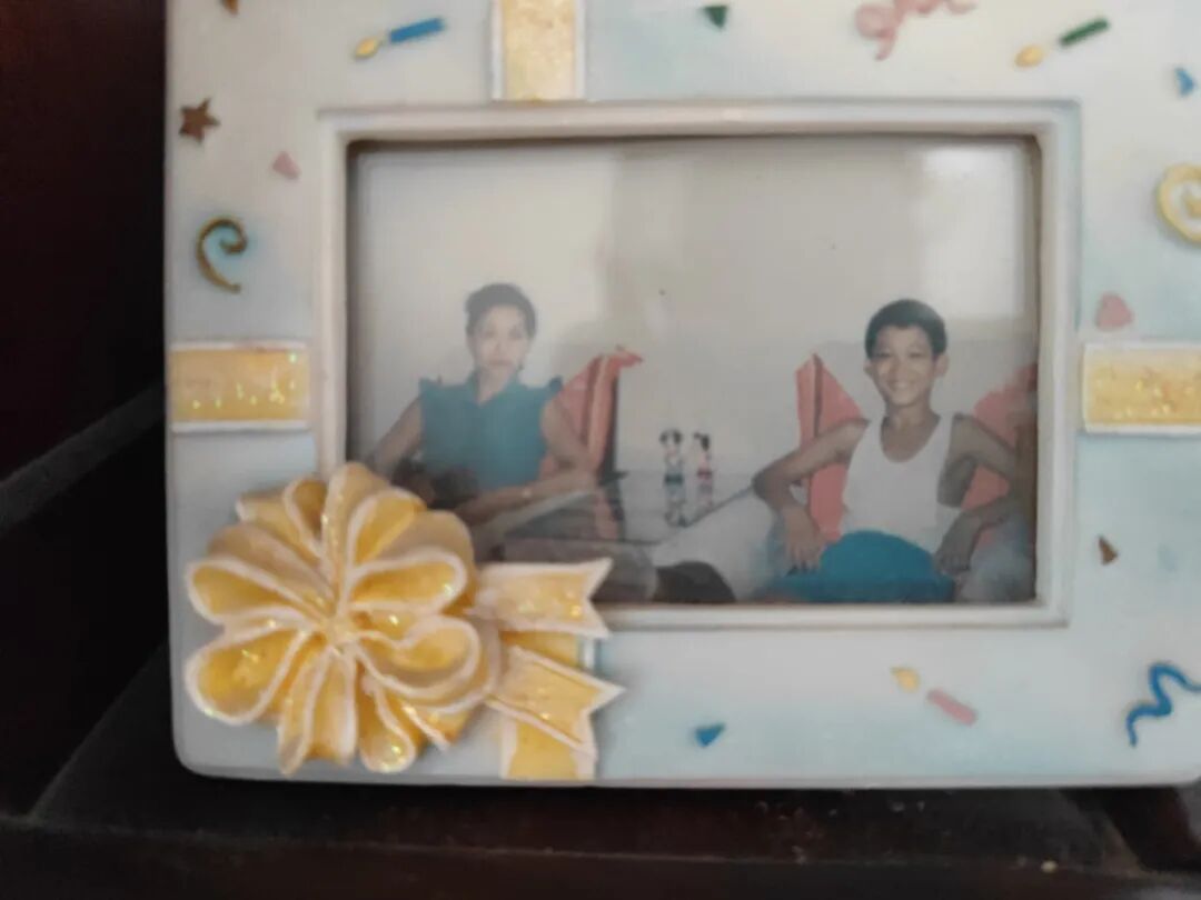 柜子上的几张照片。