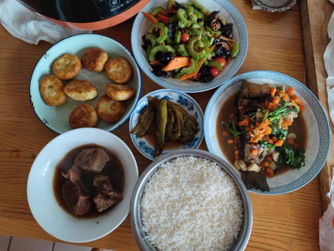 虽然只有我一个人,妈妈还是给我做了一大桌子菜,我已经42了,只有跟她一起,我会觉得自己还是个孩子,特别的放松,特别的享受。