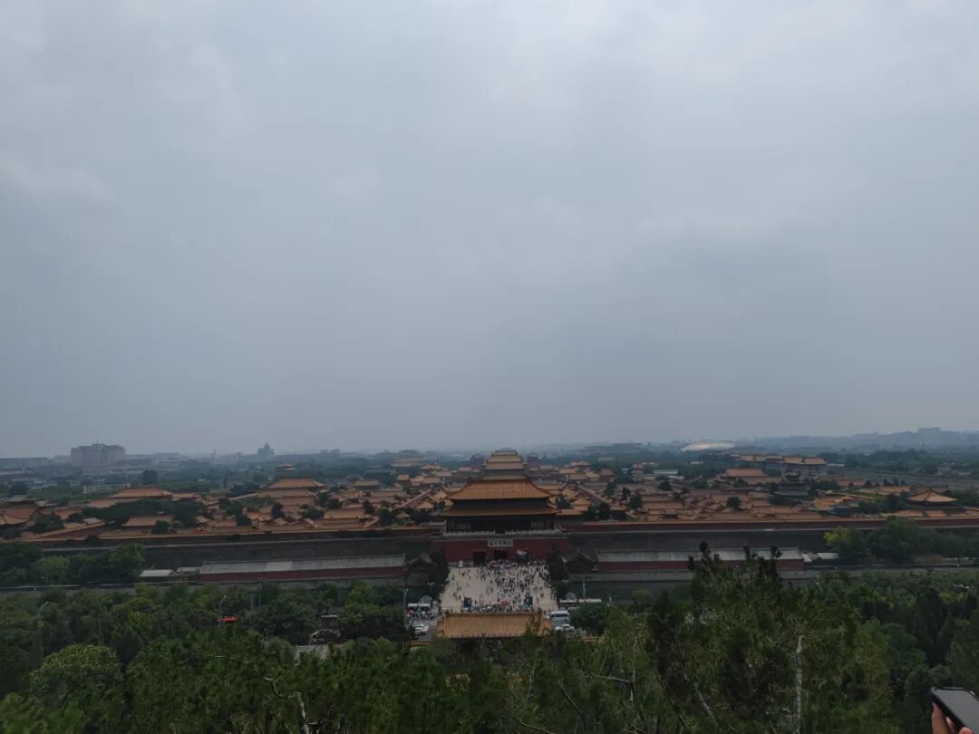 虽然景山在我眼里只是个小土坡,她还是费尽体力才爬到山顶。万春亭一直是我最喜欢的景点,北京市内高点,可以俯瞰整个北京城,南面故宫、东面中国尊和国贸、北面鼓楼和奥森奥运塔、西面北海。