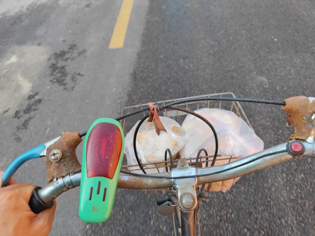 早起,去给爷爷奶奶买早点,骑着我爸的破自行车。