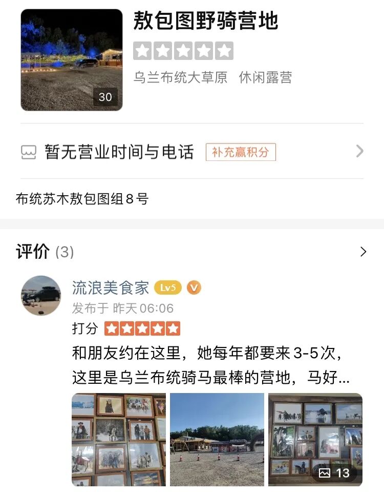 他们去骑马的敖包图野骑营地我也给出来,没有我一分钱的利益啊,我只是觉得好推出来,具体的自己判断。