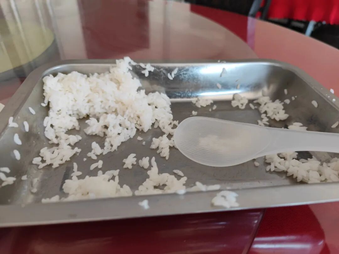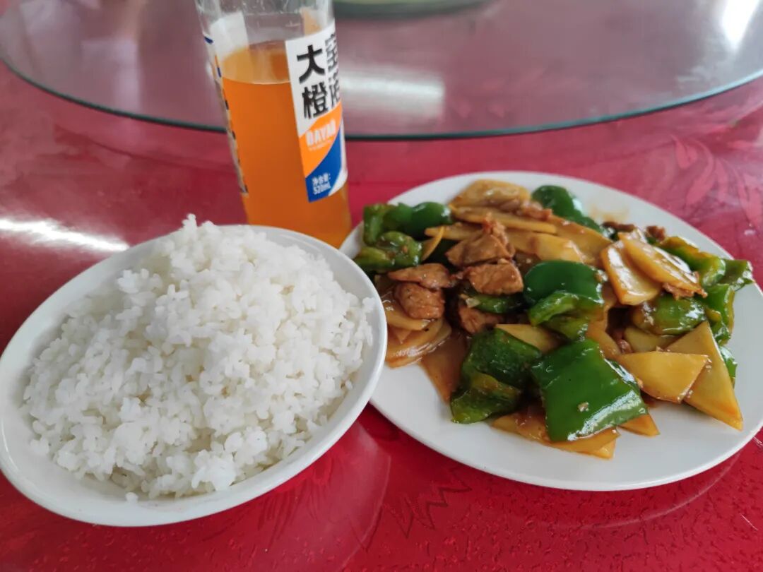 有人给我盛了一小碗饭,给我点菜的姐姐说就那么一小碗哪里够人家吃的,又给我端来了一大盆米饭和馒头,说随便吃。