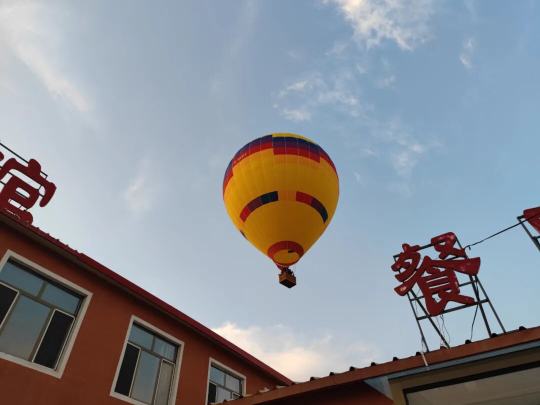 一个热气球飘过,他看我、我拍他,也许我们都想处在对方的位置上。