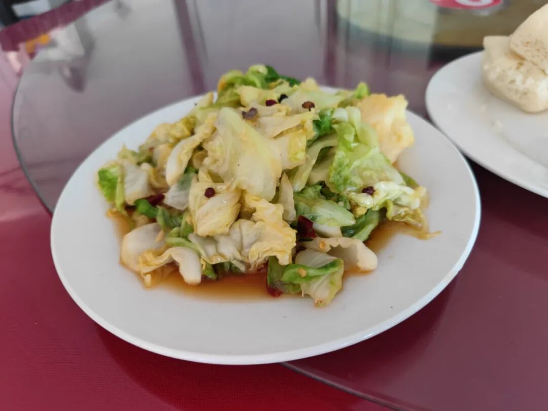 给我点菜的姐姐又给我端来一盘菜,特意说不是别人吃剩的,是做多出来的,怕我不够吃。