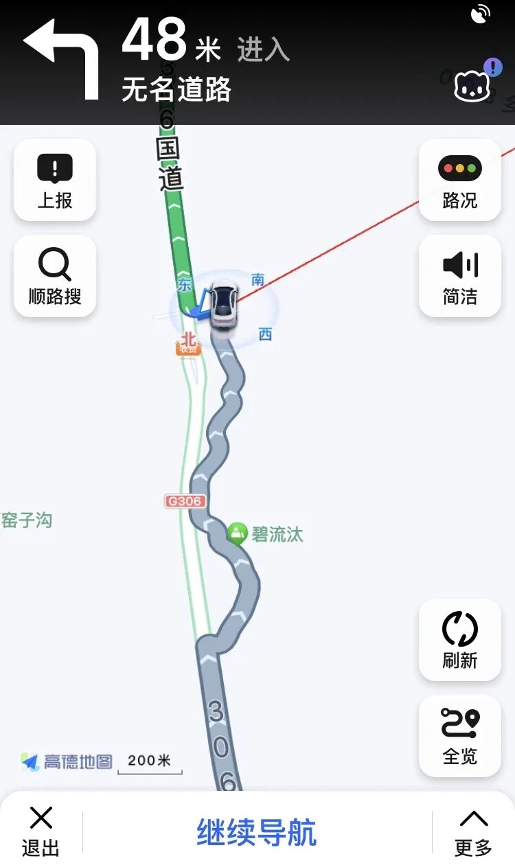 为了绕开一个收费站,导航给我指了一条旁路。