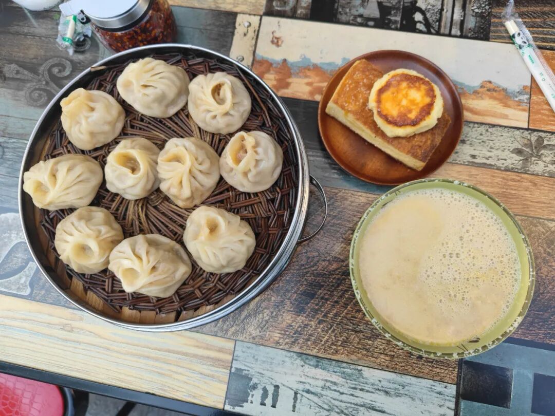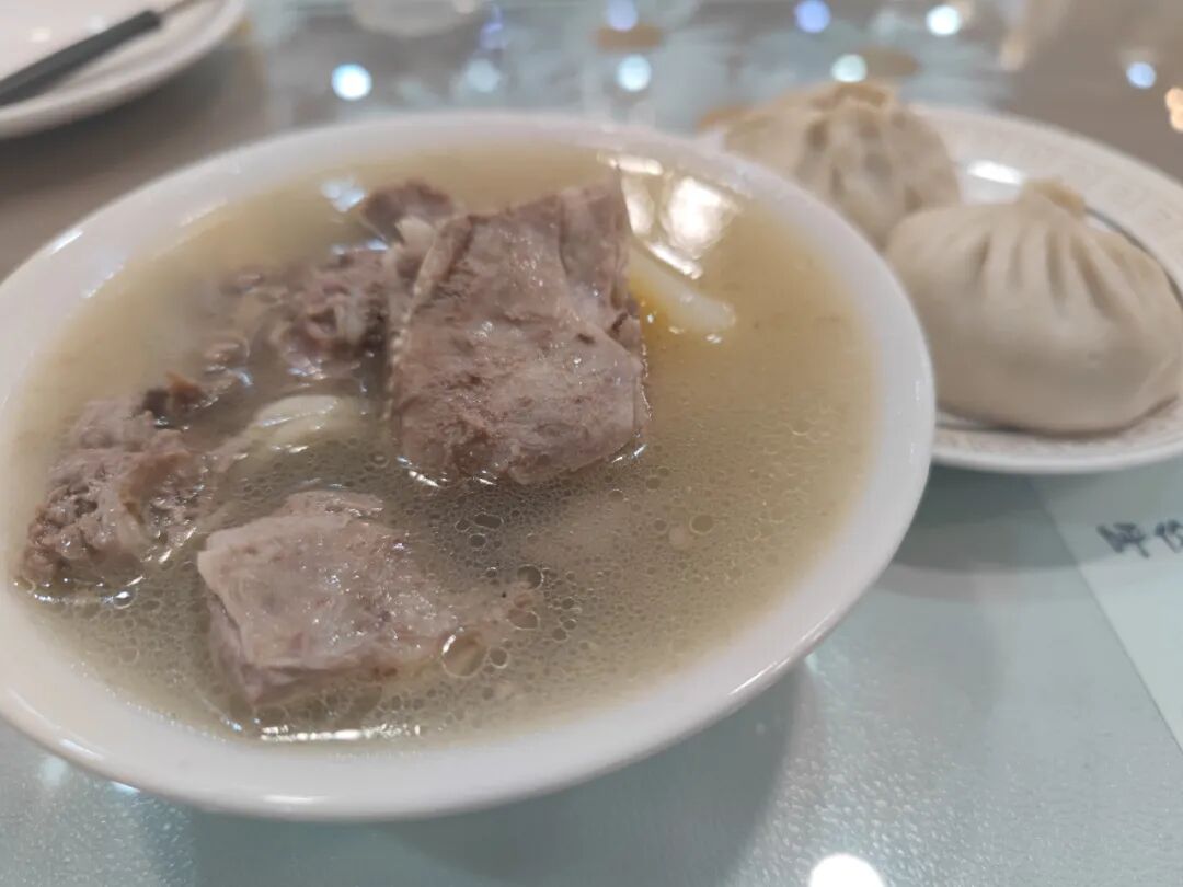 羊排汤和包子。羊排汤里有软烂的羊排和棉糯的土豆,汤很清淡又香,很棒,但这种做法我是第一次吃。包子一般。