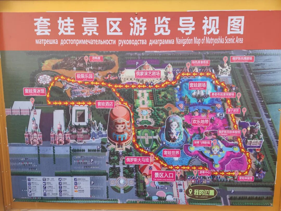 景区平面图,里面有些娱乐项目,比如表演啥的,额外收费。