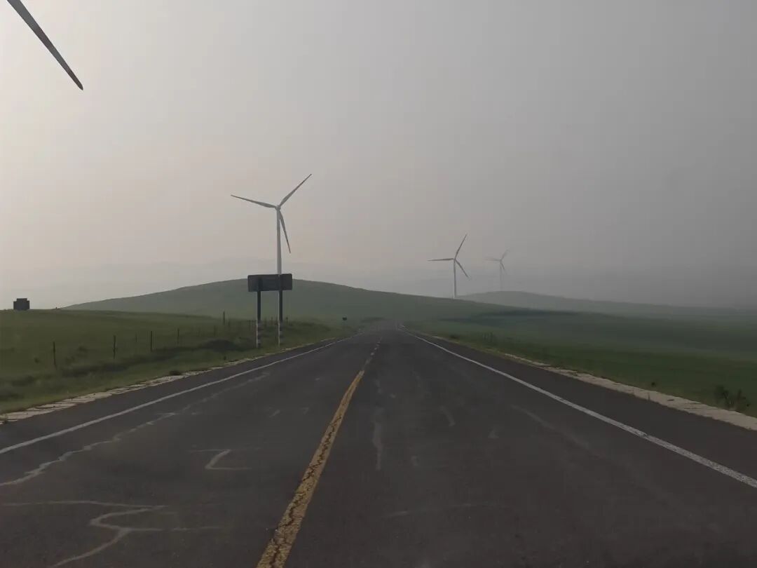 从呼伦湖往满洲里市区的路上,都是这种立在草原上的巨大风电,我这个时候天气不是很好,可以想象一下,如果是蓝天白云,翠绿的草原上,一排风电扇叶缓缓转动,还是很漂亮的。