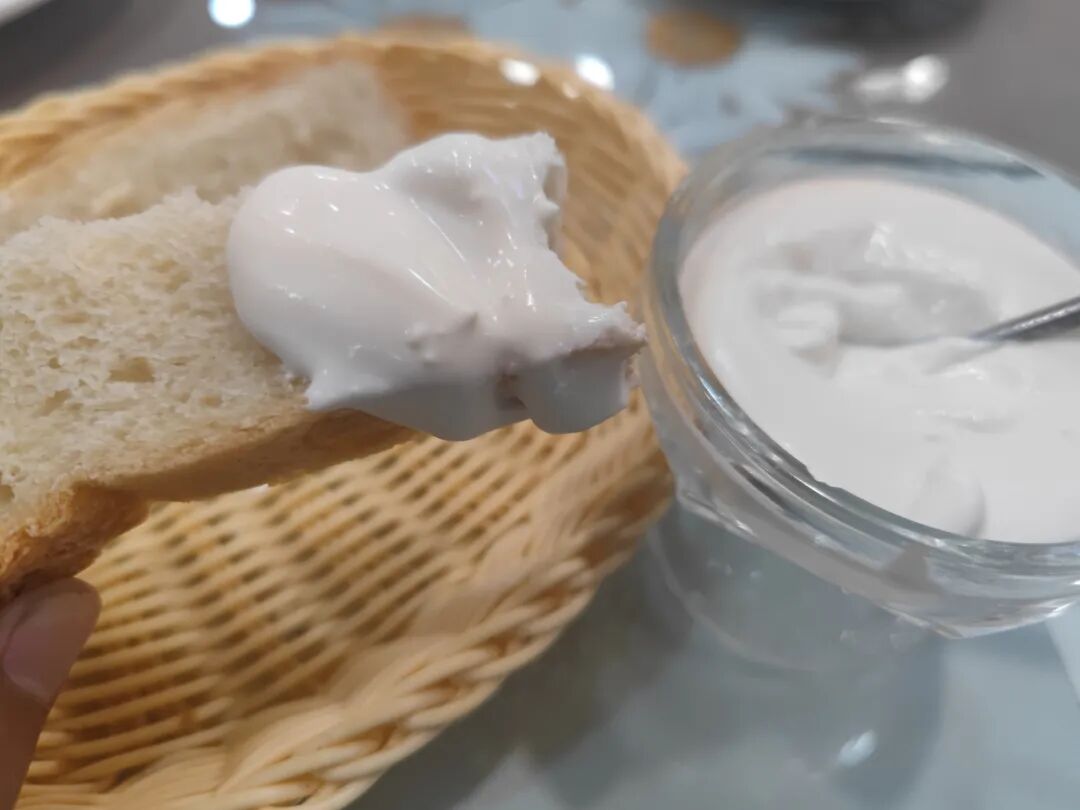 西米丹抹列巴。这应该是种奶油,但又略淡略酸,第一口并不惊艳。但它和列巴在一起,却配合出美妙的滋味。有些食物是这样,单独吃并不如何,但和某种特定食材就是绝美搭配,它们之间的味道会相互提携,甚至形成新的滋味。