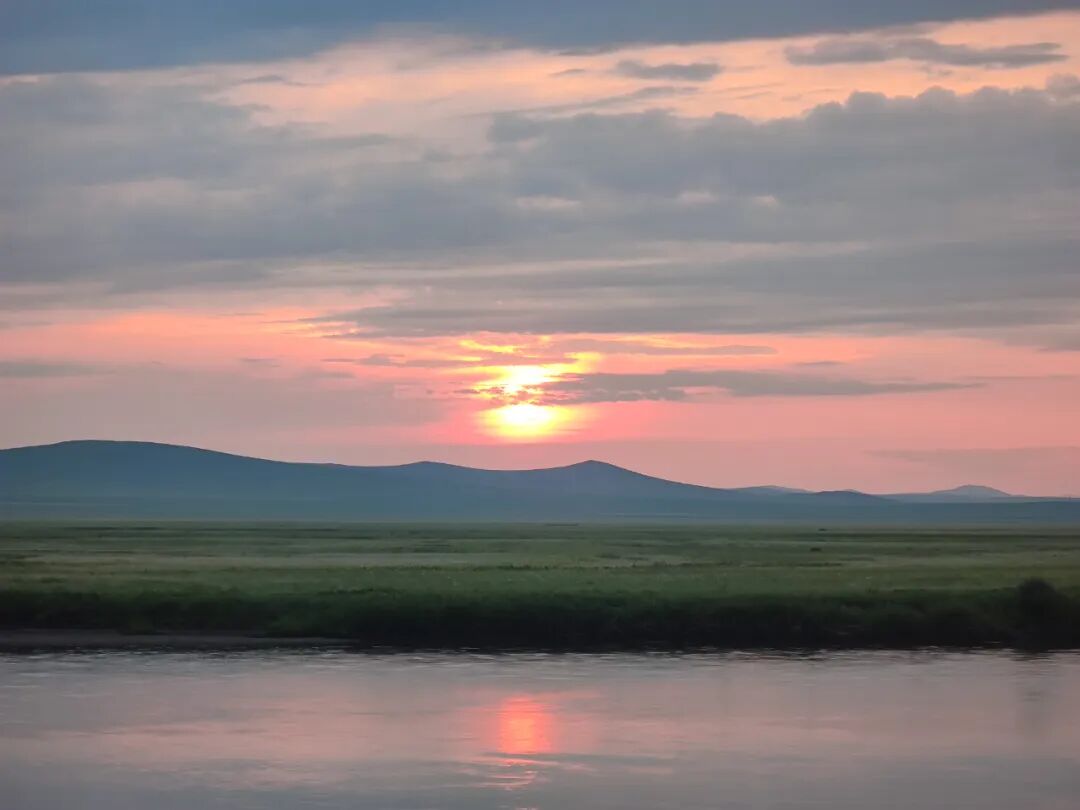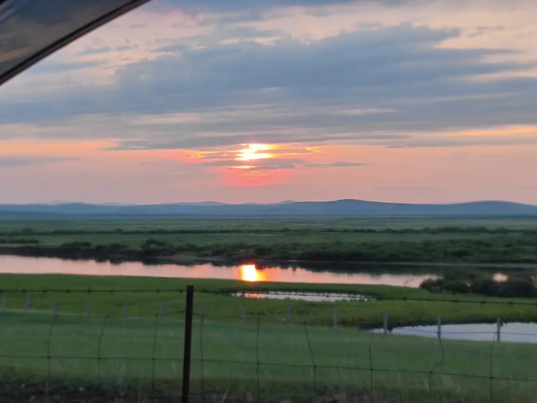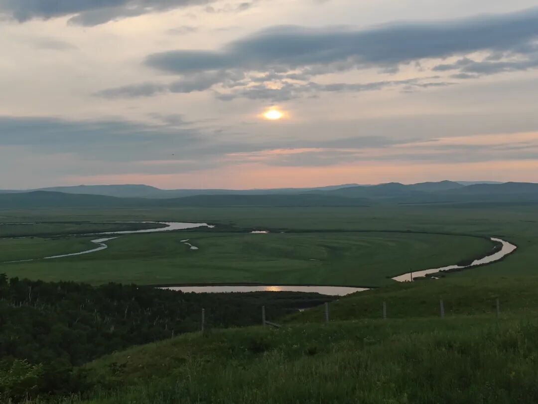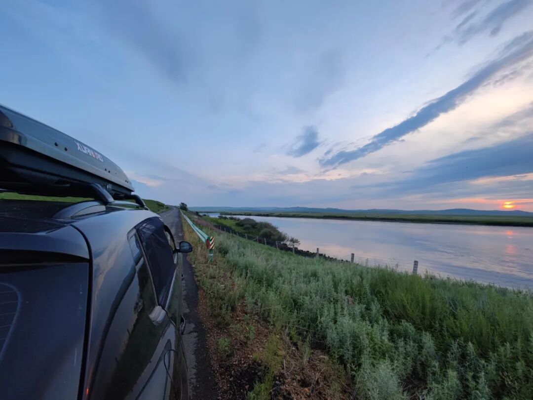 我已经进入呼伦贝尔腹地,沿着中俄边境的额尔古纳河,伴着下落的太阳前行。
