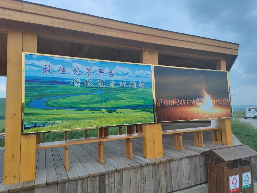 从高处的国道上俯瞰落日下蜿蜒的额尔古纳河,我的车窗外全是美景,是壮美山河。