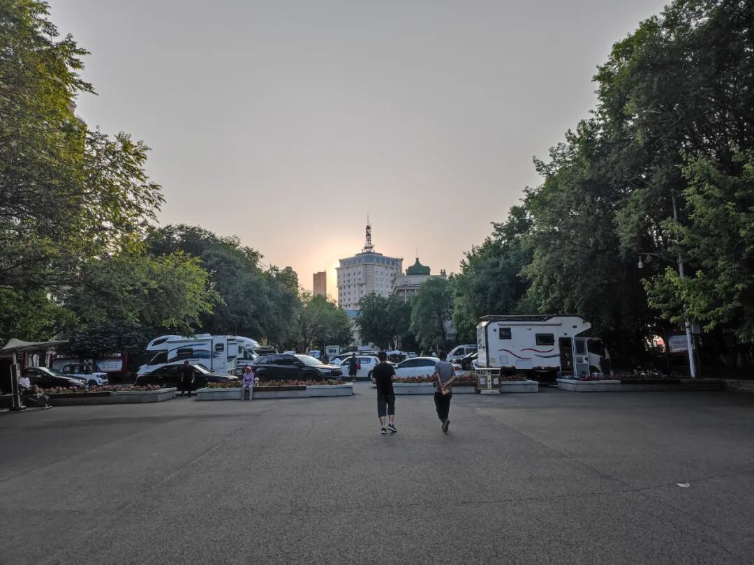 黑河母亲广场边的免费停车场,停满了全国各地来旅游的房车。本来有个超级大的爱辉国际房车营地,但那里又远又不方便还收费,去的人很少,大家都扎在这里,市区里,免费,有公厕,离早市近。