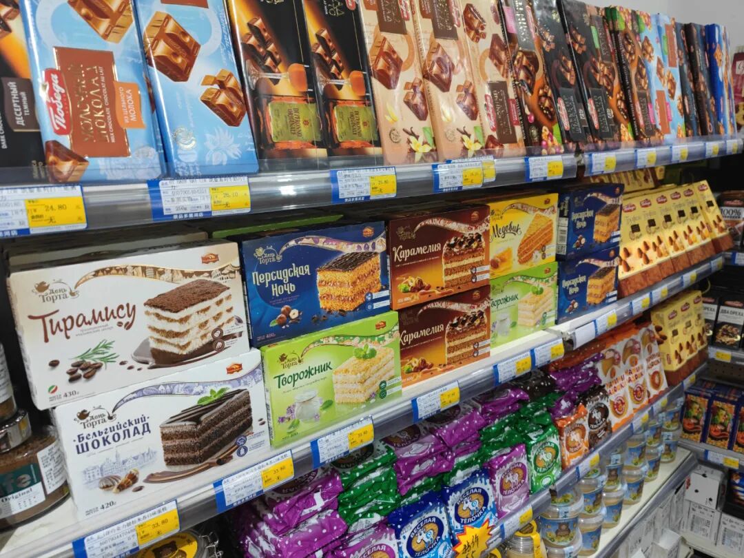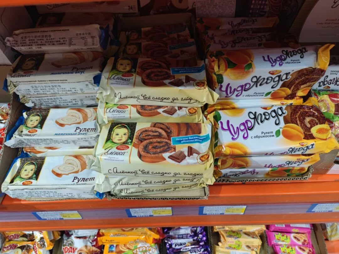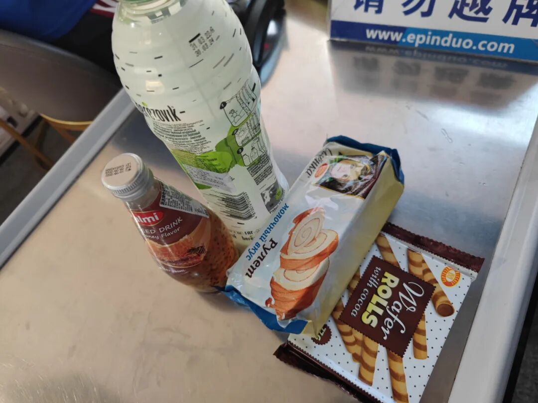 有个售货员给我推荐了一下,我就买了这几样。一瓶大的是白桦树汁,售货员说还挺好喝的,一个蛋糕据说很好吃,一个蛋卷,还有一个奇亚籽饮料,这个不该买,是泰国的……