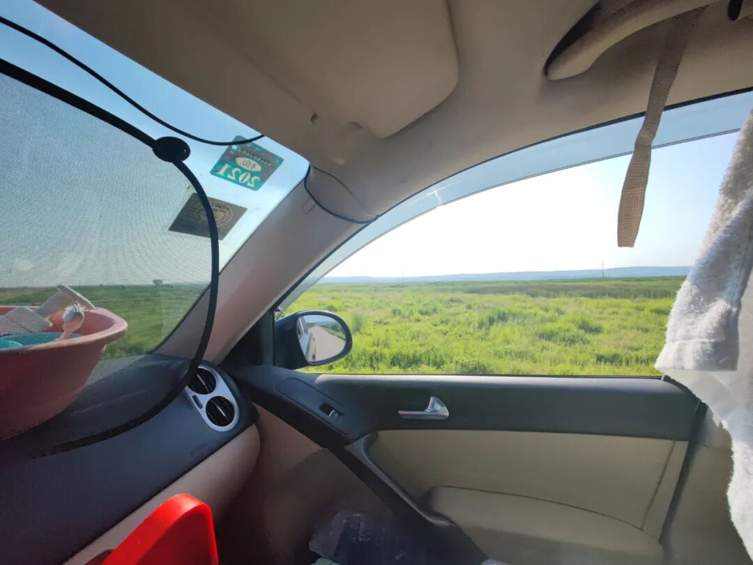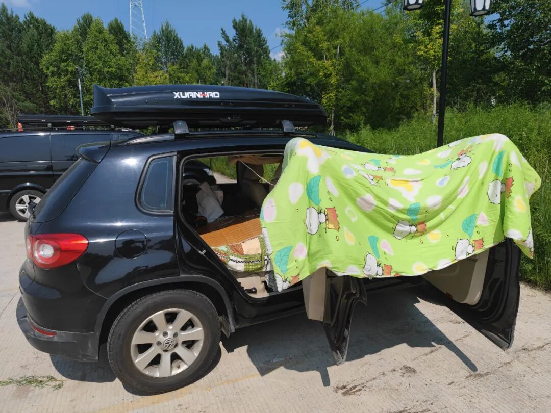 我找到了新的晒被子的方法,这个景区停车场没啥人。