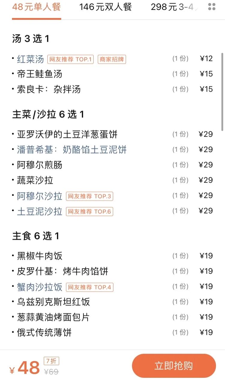 饿了,在网上找了家不错的俄餐厅。
