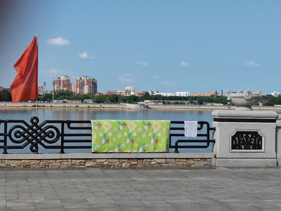 我在卫生间好好的洗了洗,擦了擦身上,把我的小花被子拿出来晒在江边的栏杆上。我也算是在中俄边境线上晒过被的人了,不知道对面有没有俄罗斯姑娘看上我的被。