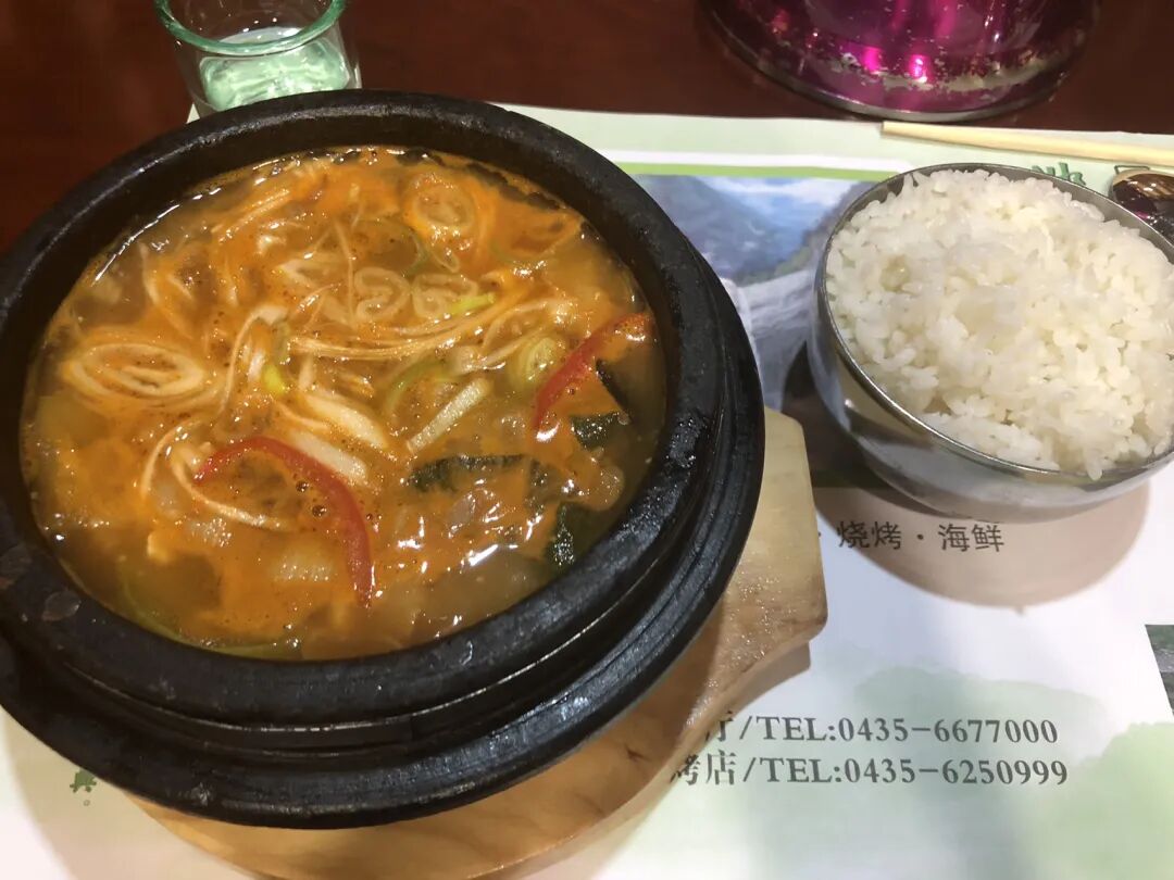 这家朝鲜餐馆没想到挺气派,服务员都是朝鲜人,统一的白上衣天蓝包臀裙,纤细白嫩礼貌。大酱汤做的真好喝,喝完回车里继续睡觉,视频先不做了。
