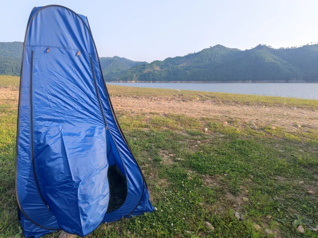 看到旁边车里有女士,我把厕所帐篷也搬出来。
