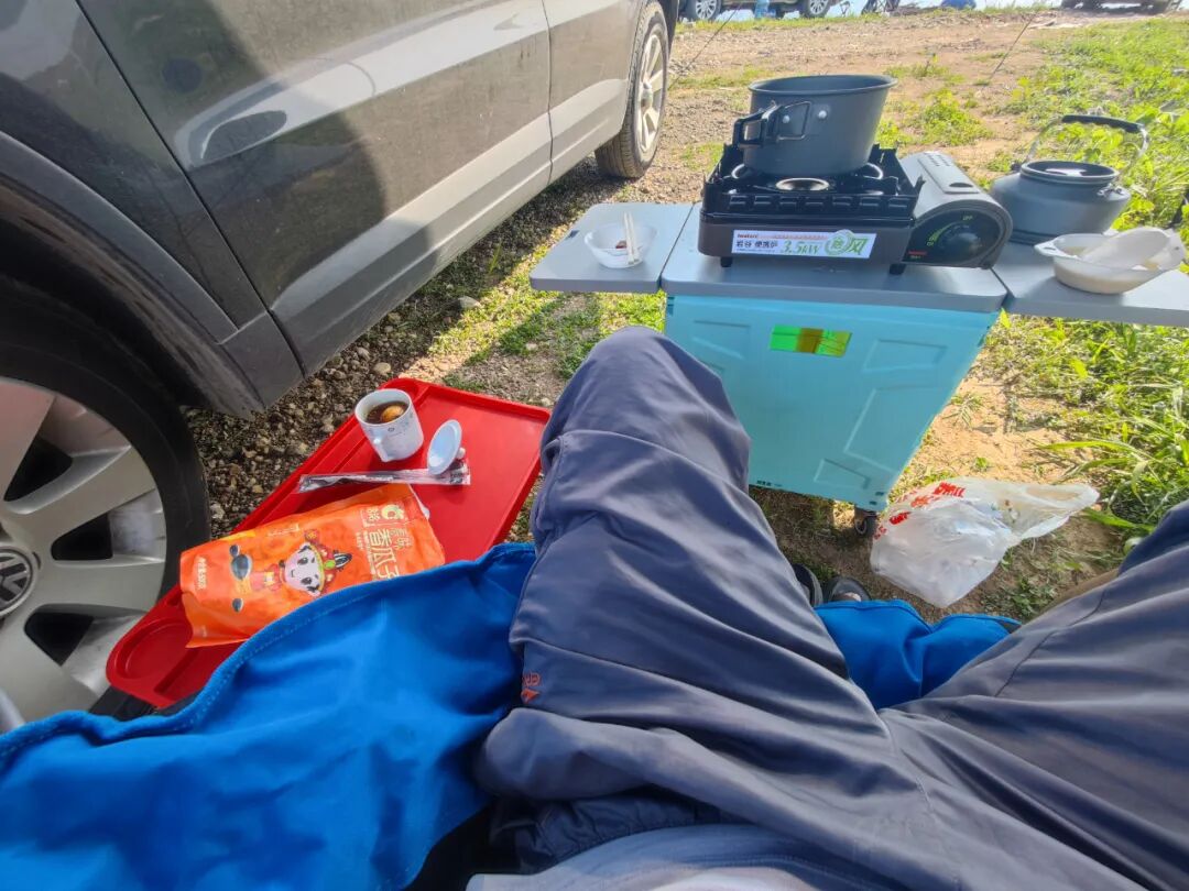 天幕很结实,我给自己煮了棒子面儿粥,烧了壶开水沏茶,对着反射着阳光波光粼粼的江面和远山,这会是很宁静安逸的一个下午。