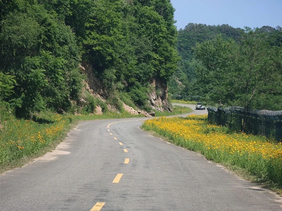 快到目的地时,路边隔一段儿就会有个观景台,俯瞰江景。