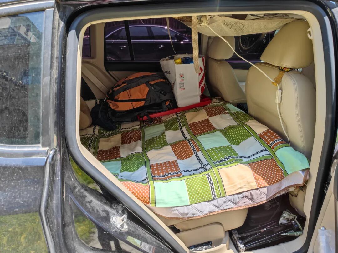 遇到一对从吉林来旅游的大叔大婶,孩子都大了,他俩没事干,就开着床车出来玩。他们东西也挺全的。
