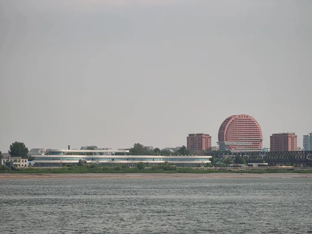 鸭绿江对面就是朝鲜,很近的地方,可以看到那边的建筑。
