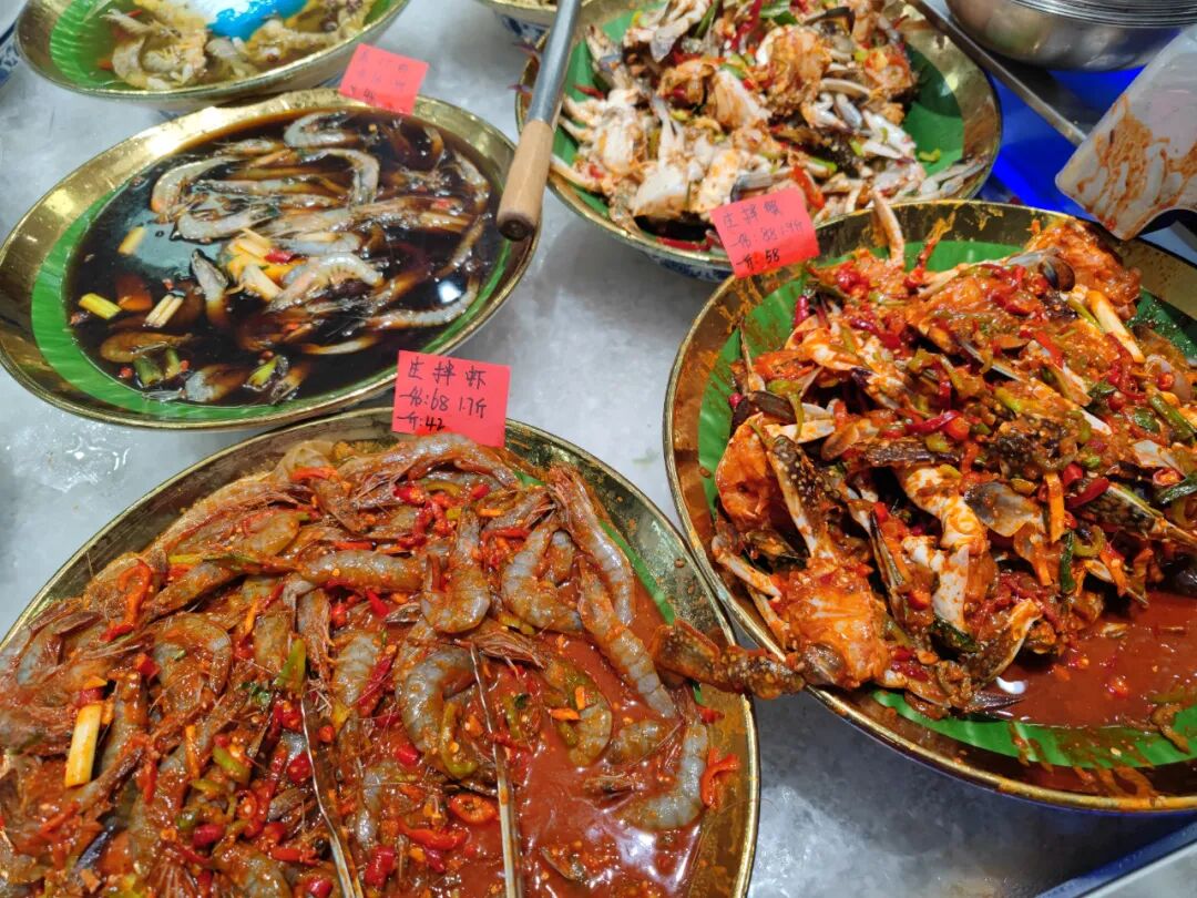各种生腌虾蟹,这个看网上评价也很好,生腌的配料和南方不一样,感觉像腌泡菜的调料,我在舟山吃的呛蟹很美味,这次就不尝了。