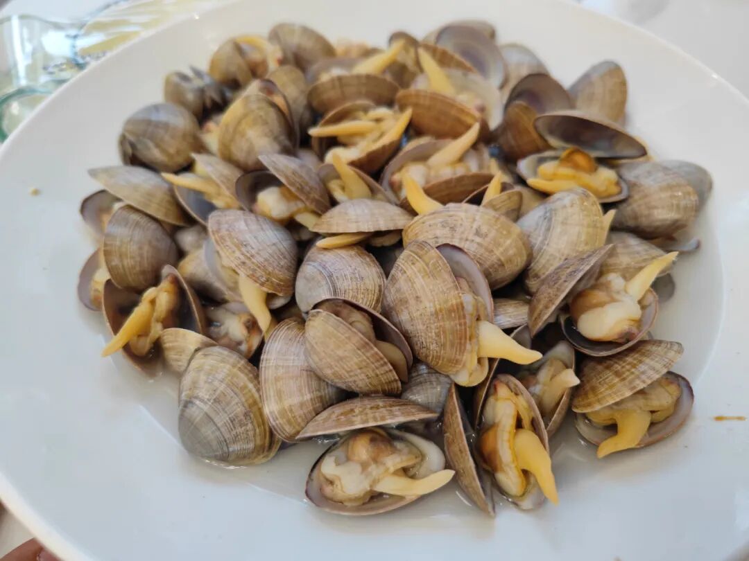 黄蚬子,我的妈呀,简直太好吃了,48一份的已经很肥了,这是我吃过的最好吃的贝类,白水煮,有一种清清淡淡的鲜甜,扒下来的时候会有小“扇贝”似的瑶柱,用手一扣就下来,很嫩很甜,不像我以前吃的跟橡皮似的。丹东黄蚬子果然名不虚传,我以后不会再在别的地方吃贝类了。