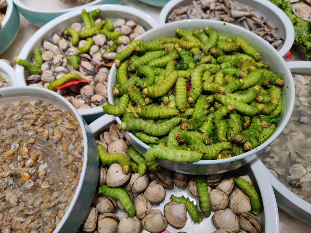 一种活的青虫,询问说是跟青菜一起炒,这个我吃不来。