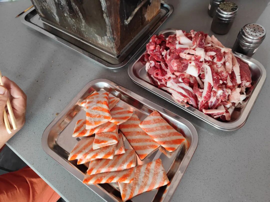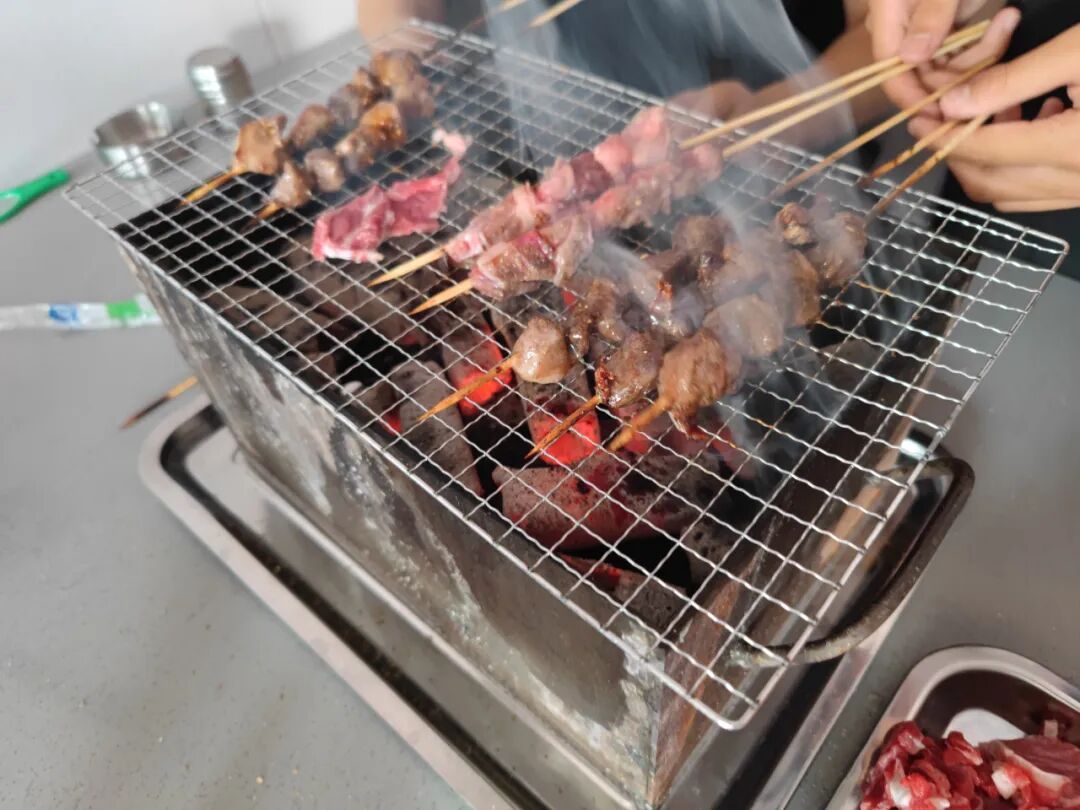 肉还是小妹帮助烤的,我本以为昨天之后我学会了,但小妹看我太笨拙,还是帮我烤了,弄得我很过意不去。