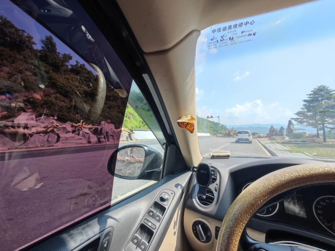开车奔岫岩,路过一处山景,停车时,一只蝴蝶飞进我的车里。