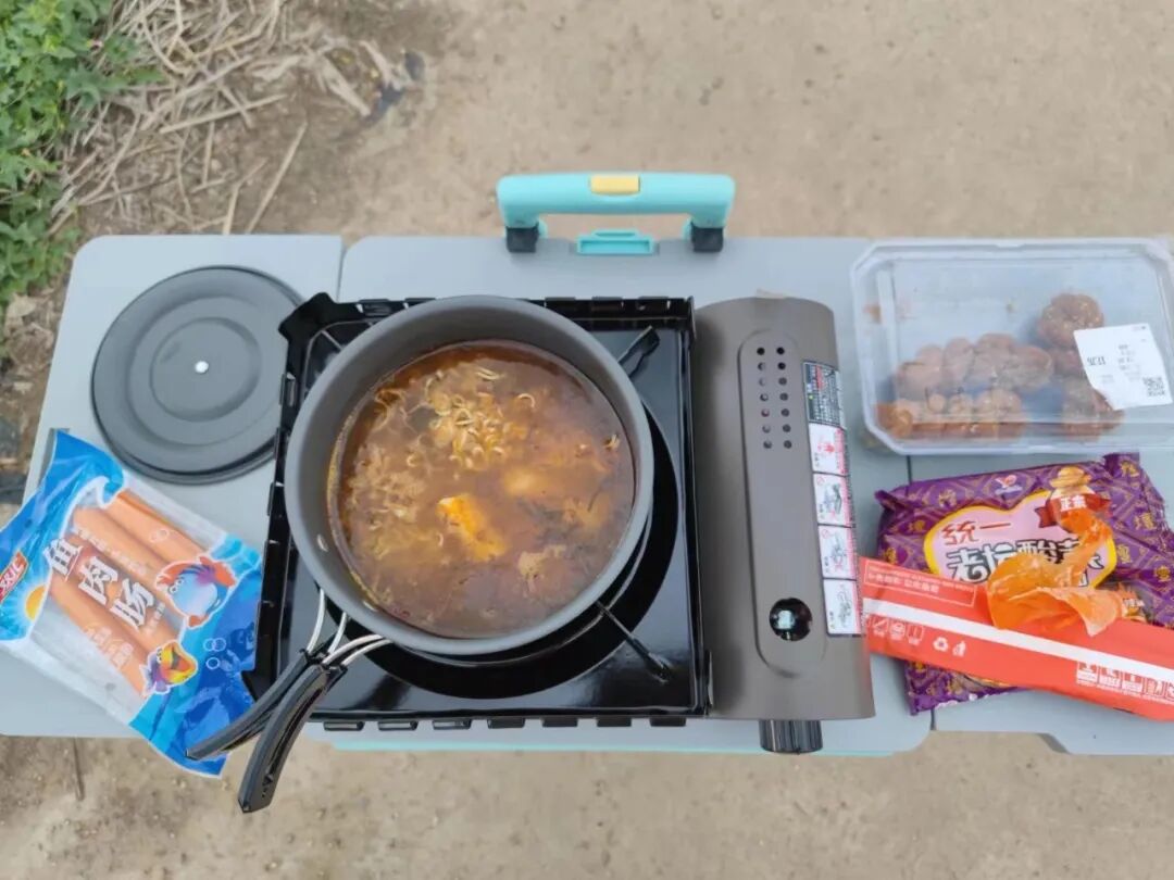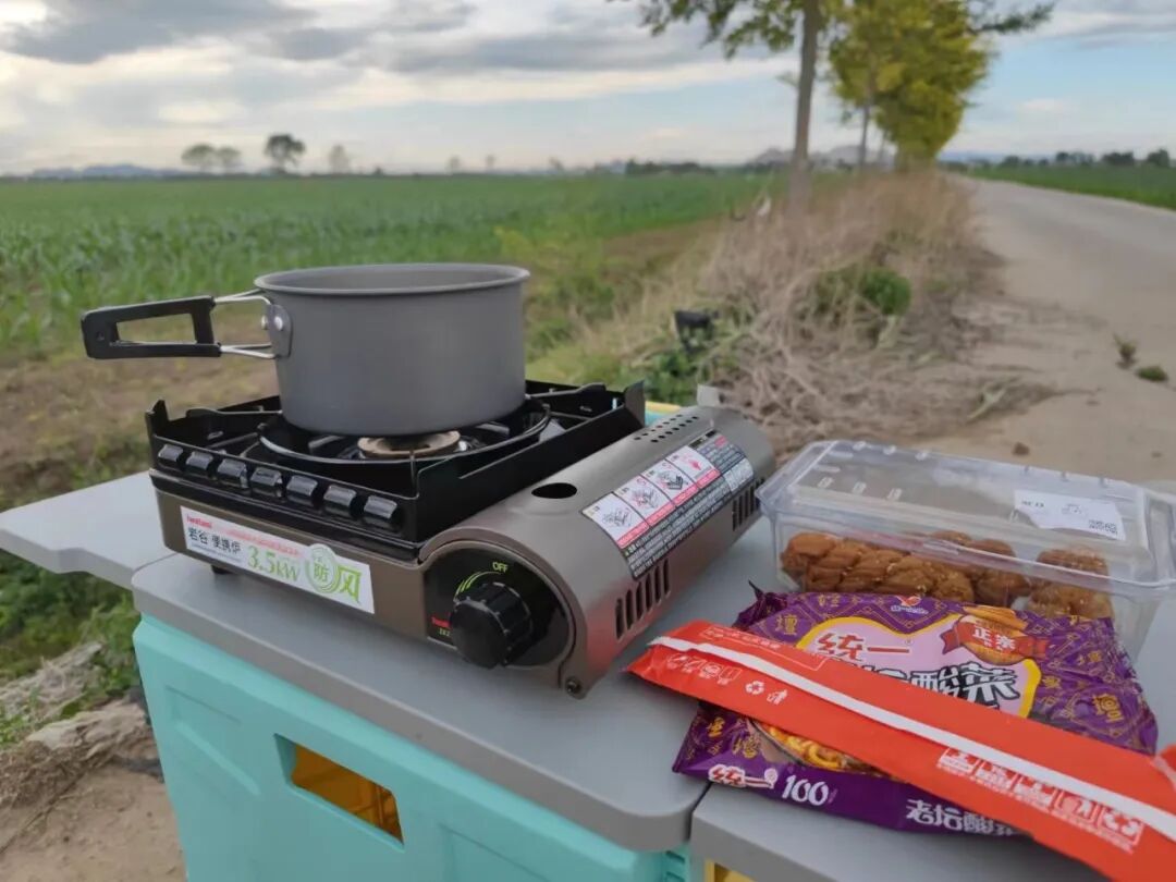 田间地头人很少,我就拿出了我的卡式炉,给自己煮碗面吃。