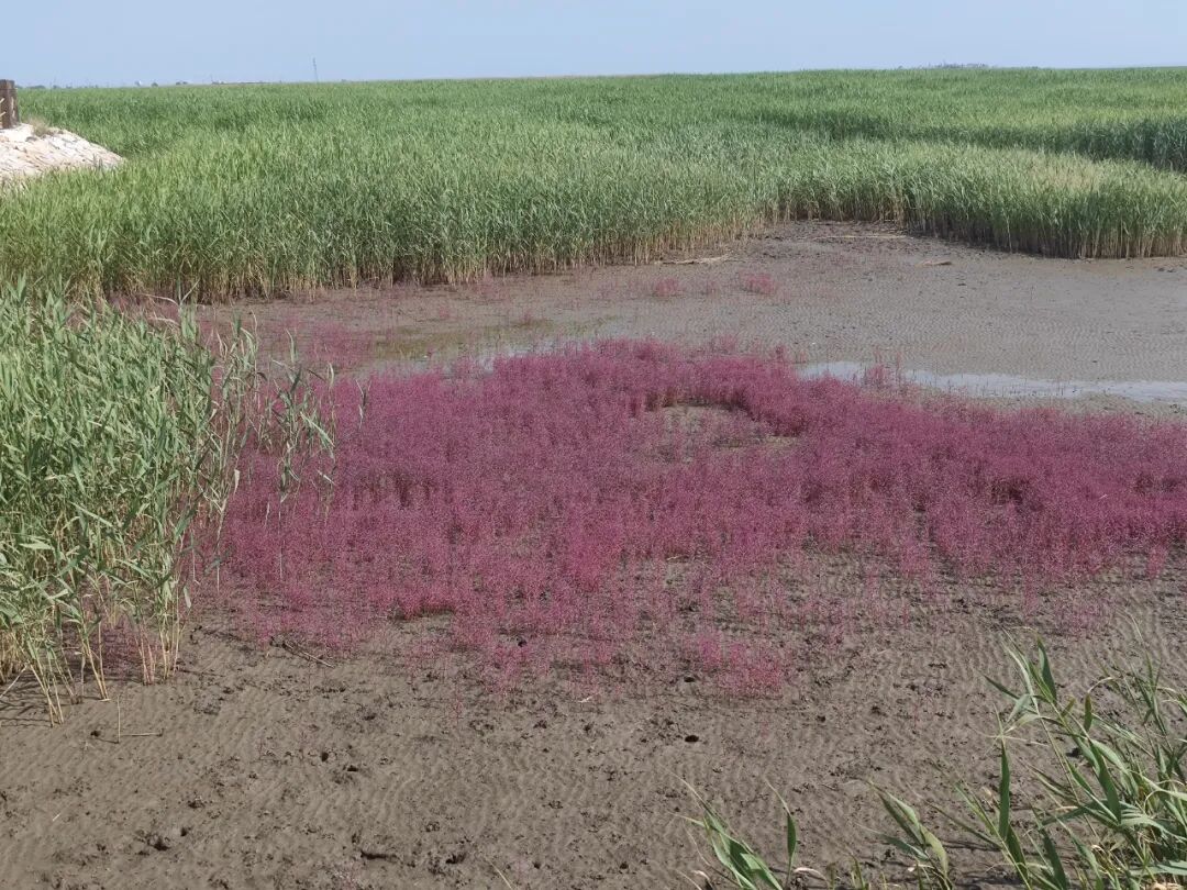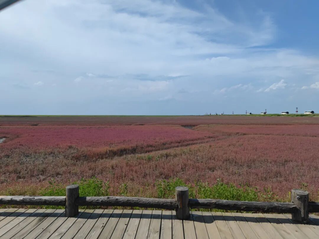 红海滩的红色,是一种碱蓬草,对环境要求很高,但到了秋天的红色极为壮美。