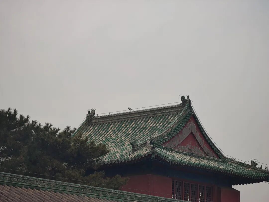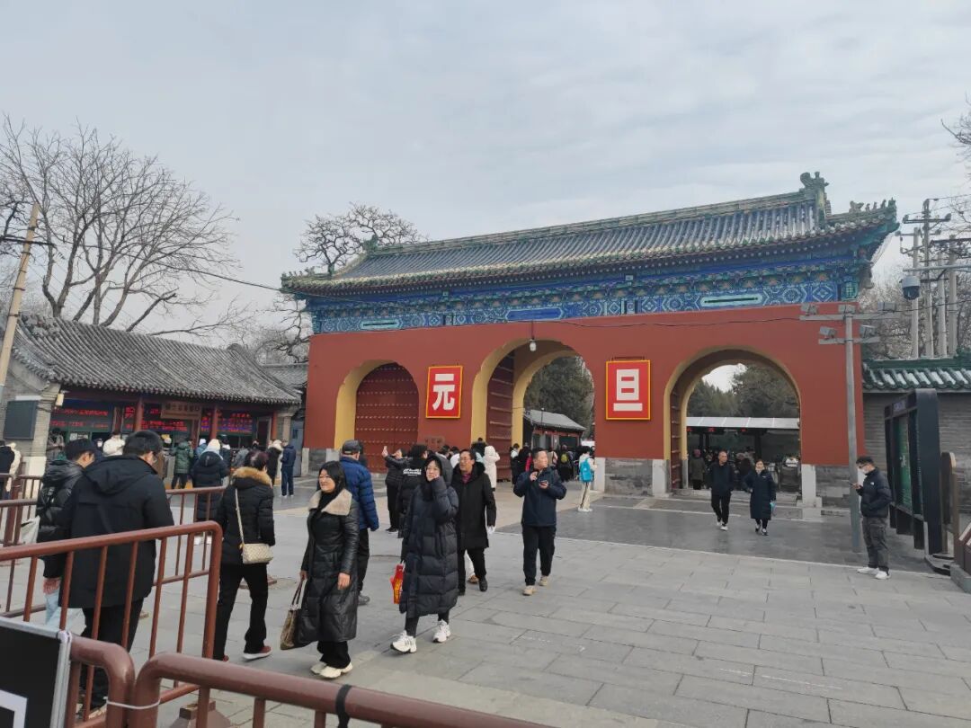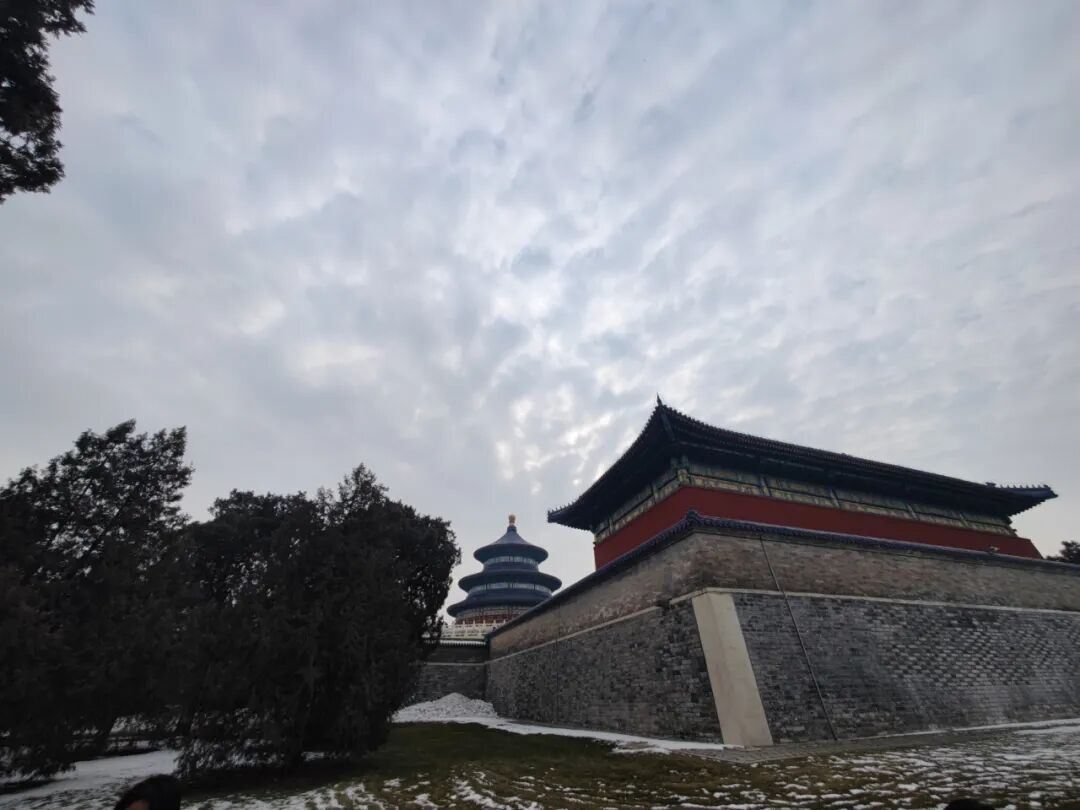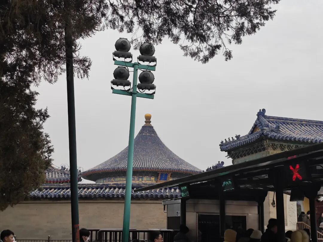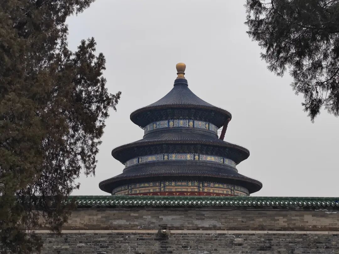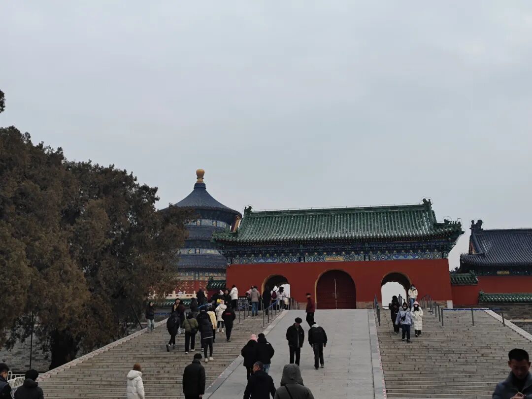 走到南北线上,透过成贞门的门洞可以看到北面远处的祈年殿。