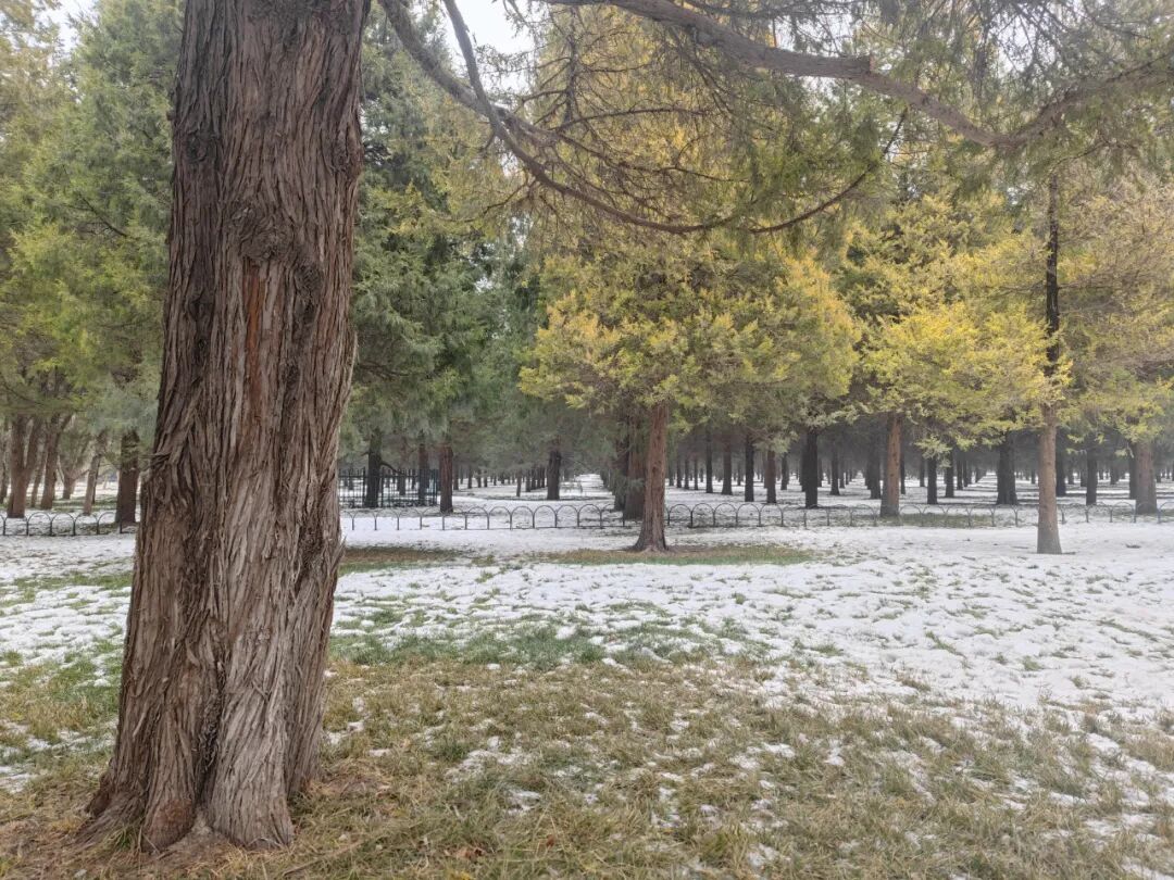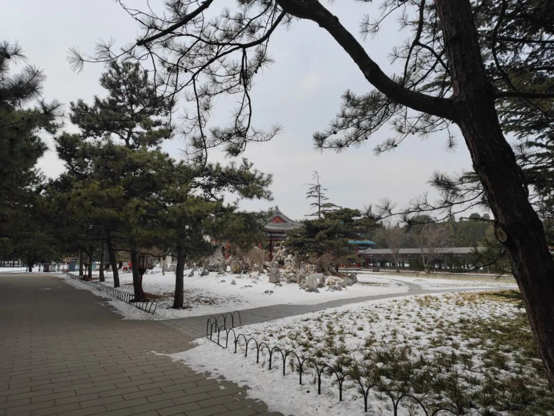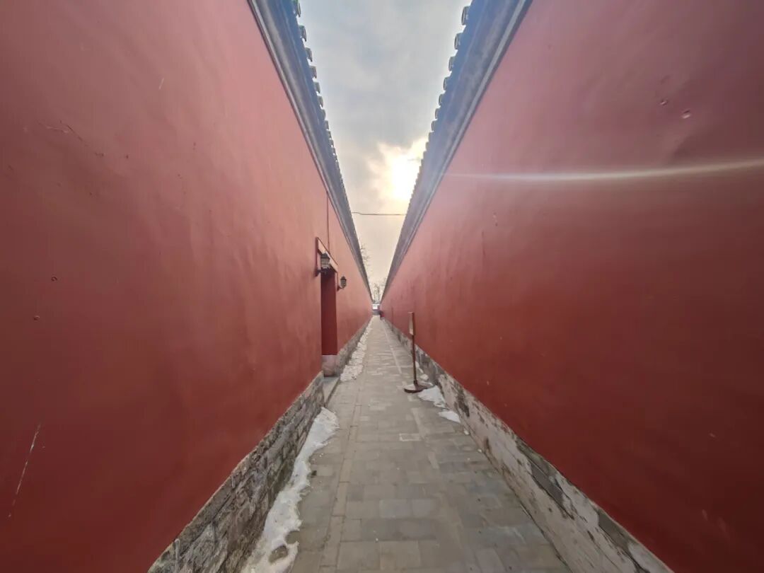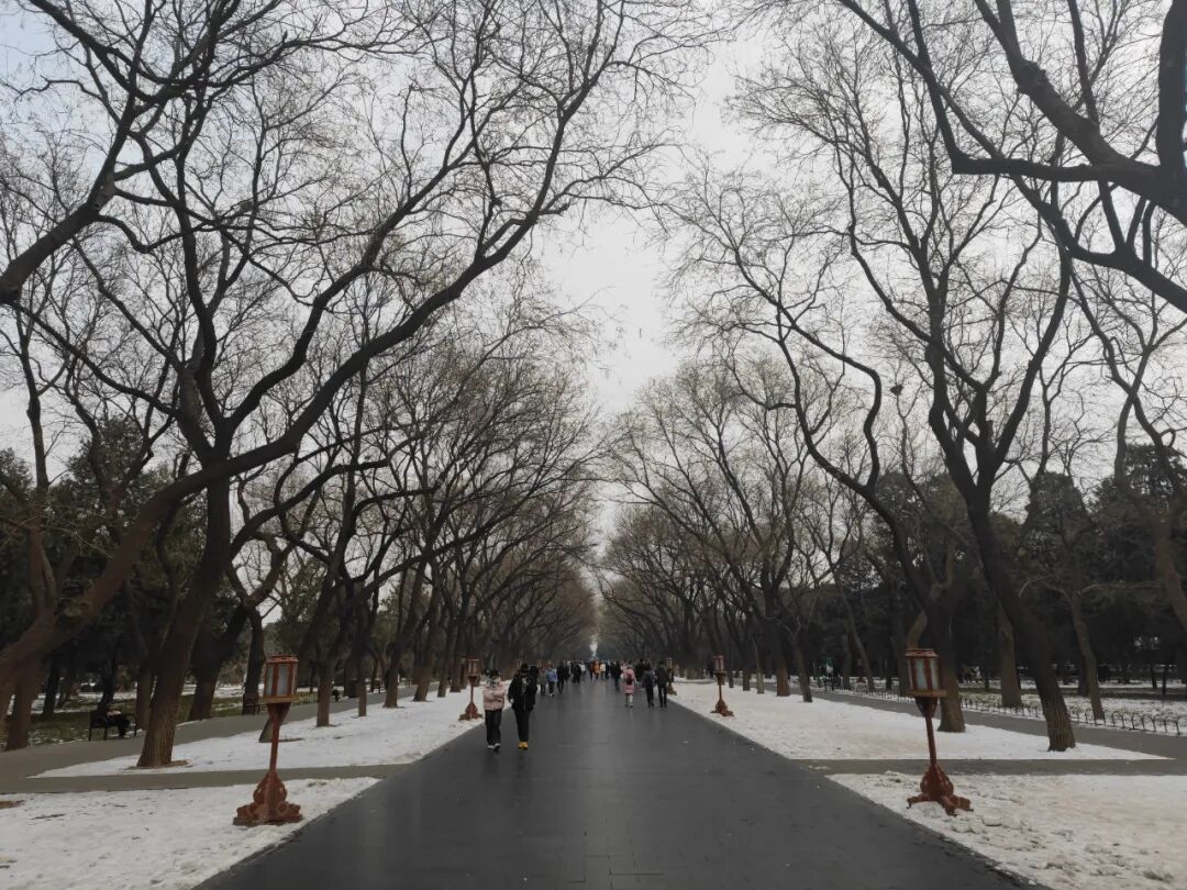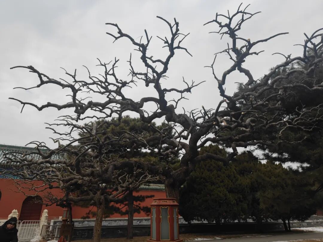 门里甬道两侧高大树木光秃秃的枝干,形成了非常美的画面。
