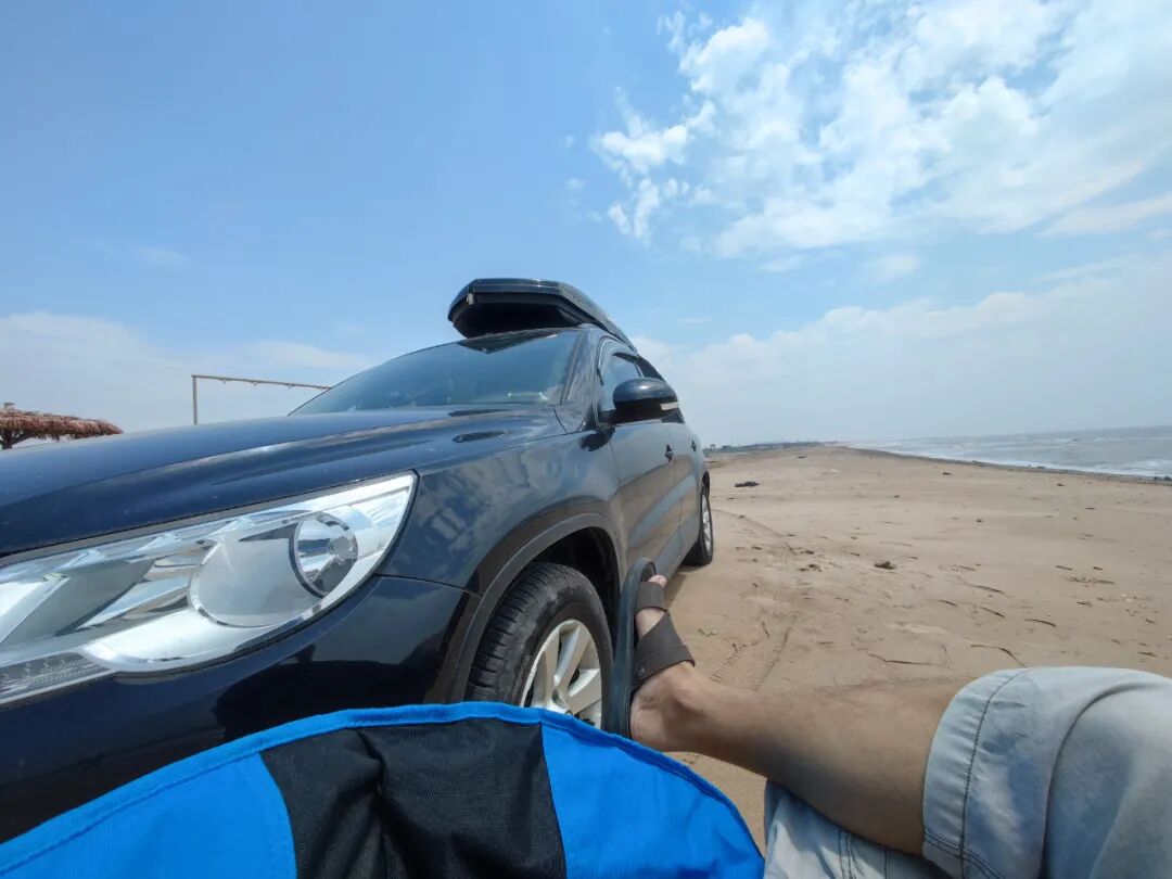 其他来的人转一圈就都走了,只有我一直坐在这里。海风呼啸着从我脸上狂奔而过,潮湿凉爽,涛声阵阵拍打沙滩,不远处国道上一辆辆车疾驰而过。这是我一个人的海滩。