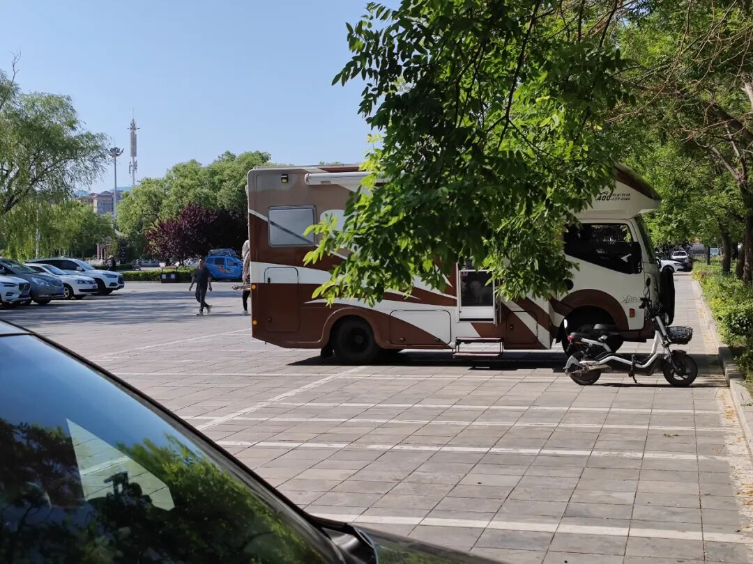 太阳下有点热,但树荫下特别凉快,有小风吹过甚至有点微冷,这里也停着不少房车。