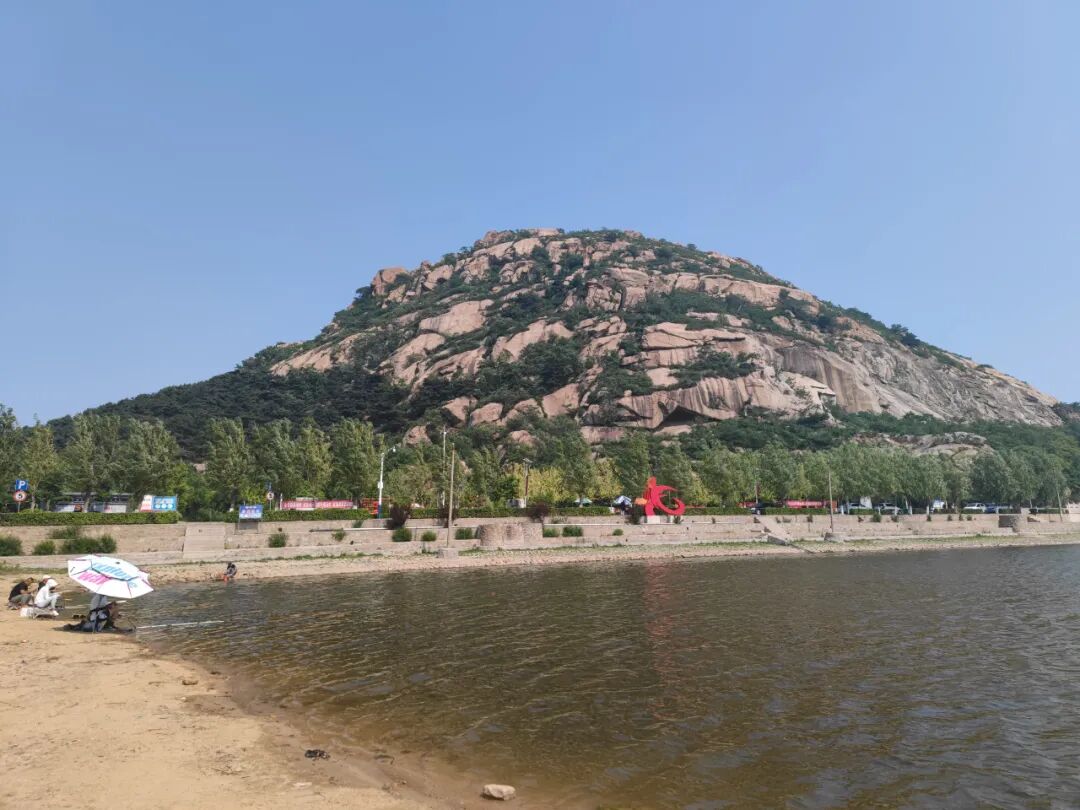 快到碣石山时有个停车场,旁边就是个小湖,山水尽收眼底。