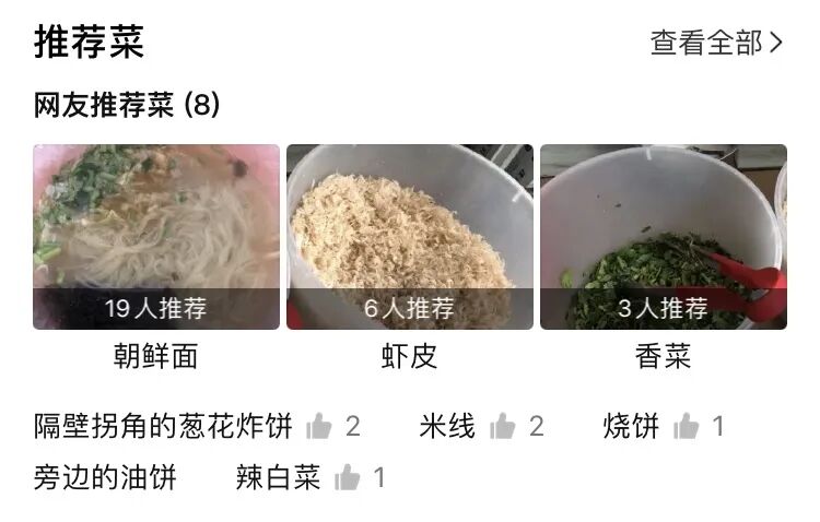 朝鲜面,有点像延吉冷面,但是热和软的,自己加底料,虾皮、香菜、泡菜。