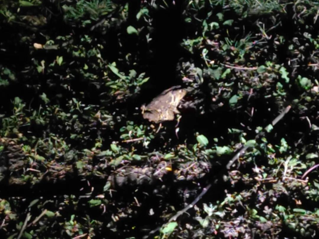 还没点亮灯之前,我总觉得草地上有东西,拿强光手电一照,发现是蛤蟆,个头儿还不小。白天他们在水里,晚上就上岸活动了。