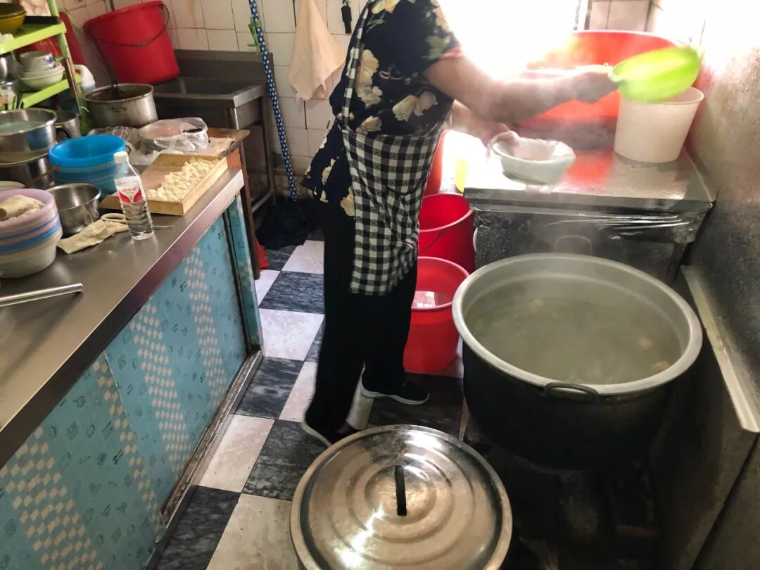 老板娘把面过下热水就捞到我的碗里,加了热气腾腾的面汤和香油。